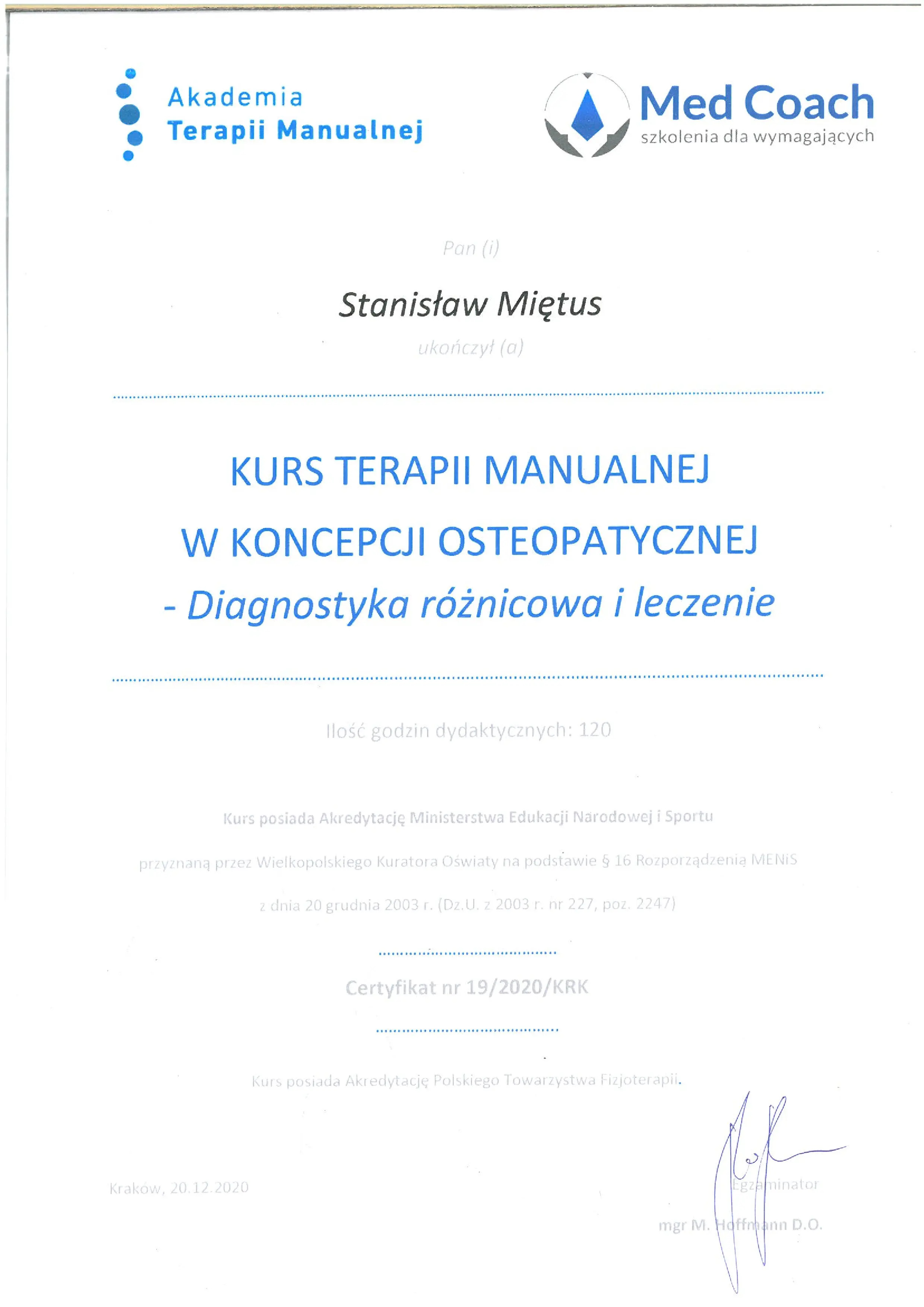 Dzień dobry, nazywam się Stanisław Miętus. Prowadzę gabinet fizjoterapii i rehabilitacji, pomagając osobom zmagającym się z bólami mięśni, stawów oraz różnego rodzaju urazami.